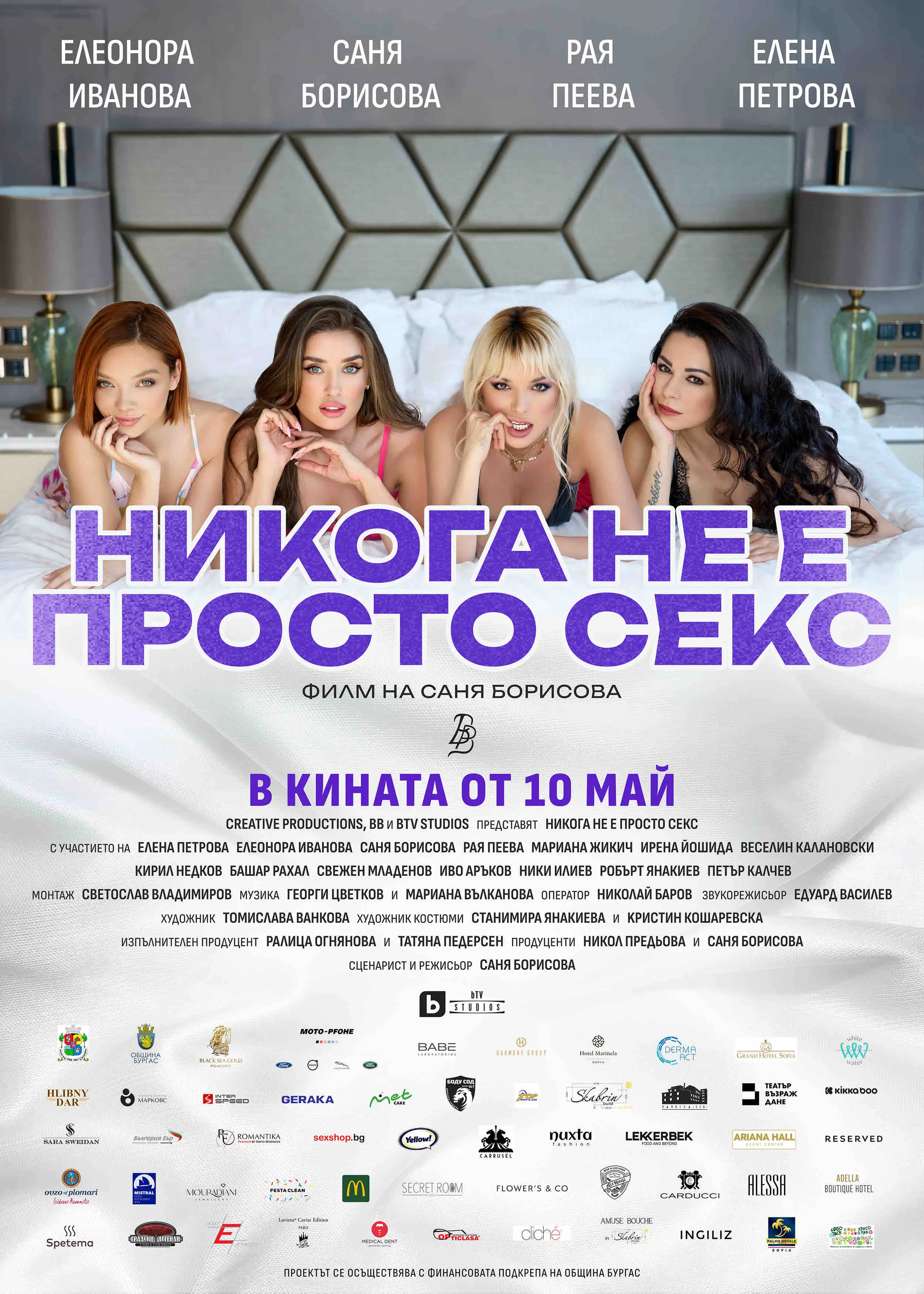 Съвсем скоро по кината излиза новият филм на Никол Предьова и Саня Борисова „Никога не е просто секс“. Премиерата е на 8-ми май, а от 10-ти май тръгва по всички кина в страната.
