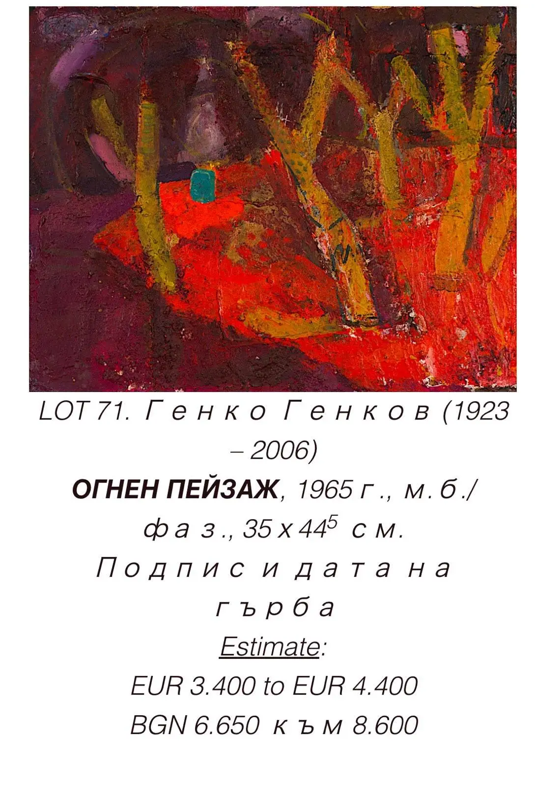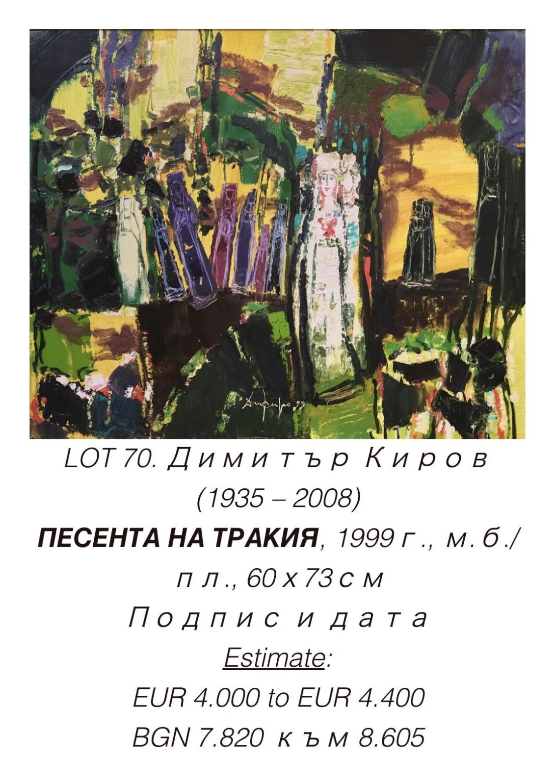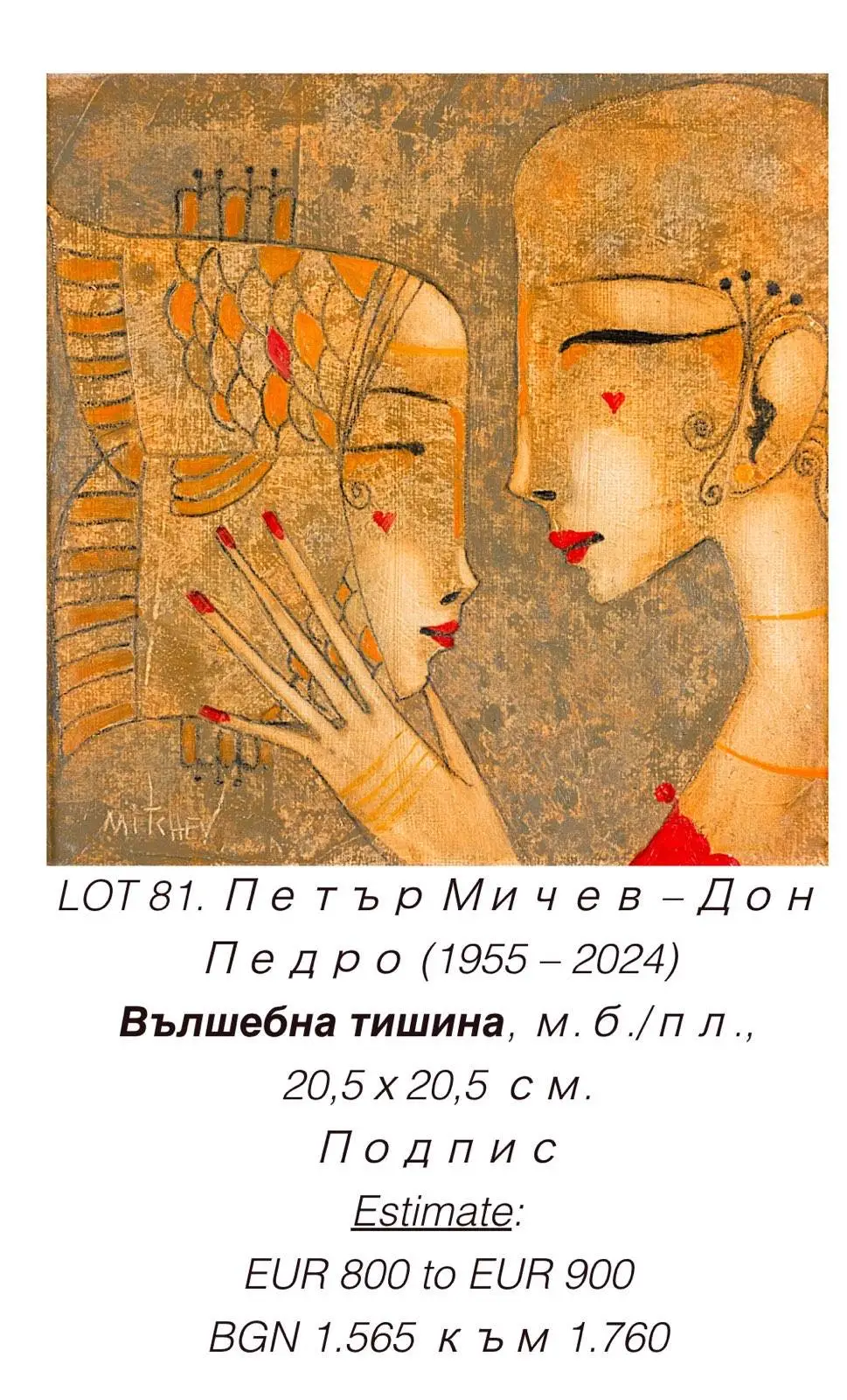 Събитието ще започне с оглед на творбите в 17:17 ч., а точно в 19:19 ч. ще бъде даден старт на търга. Сред внимателно подбраните платна блестят класически произведения на Жорж Папазов, Бенчо Обрешков и Ярослав Вешин – три имена, които олицетворяват златната епоха на българското и европейското изобразително изкуство.
