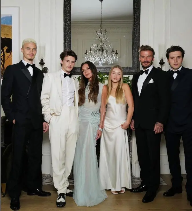 Преди партито Виктория сподели поредица от снимки в Instagram на семейството си, включително съпруга ѝ и четирите им деца - Бруклин, Ромео, Круз и Харпър. „Нямам търпение да празнувам със семейството и приятелите си! Обичам ви всички много“, написа модният дизайнер.