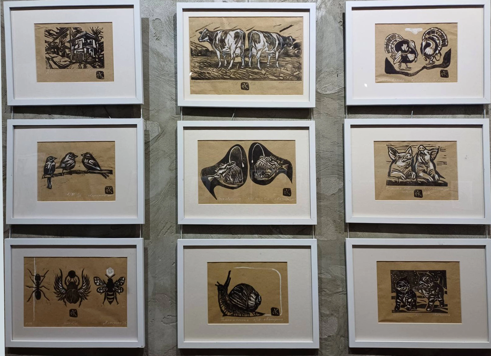 Чрез високопечатната техника линогравюра (в този случай е с лимитиран тираж до 12 копия), еКатерина съчетава реалността с въображаемото, преплитайки носталгия и футуристични визии. Някои от изложените произведения са участвали в национални и международни изложби, а едно от тях е отличено с награда от Съюза на Българските Художници (СБХ) и е носител на номинация за графика.