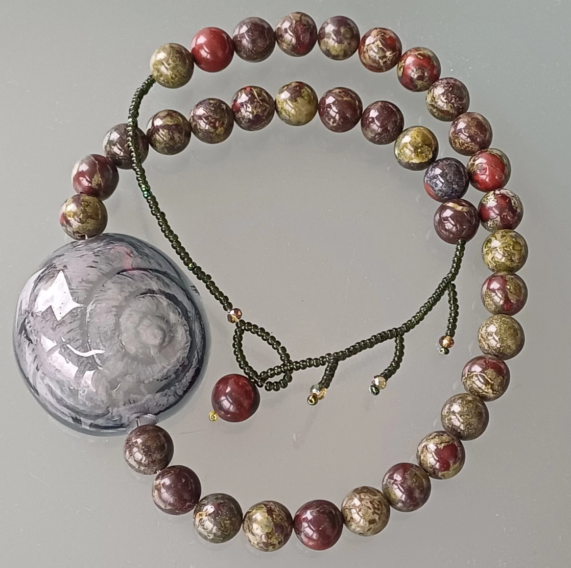 В изложбата Теодора Пиперевска представя стъклени картини, съдове и бижута в комбинация с естествени камъни и стомана.
