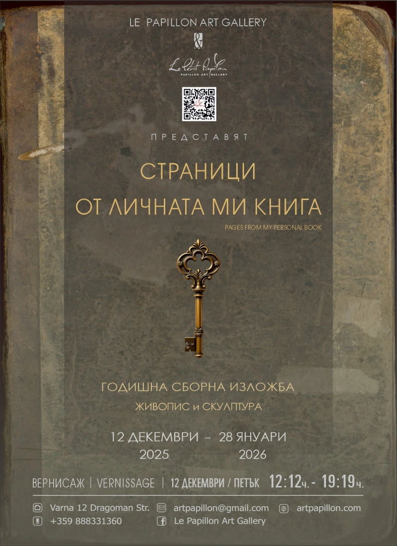 С голямо удоволствие и нетърпение Арт Галерия Le Papillon за 19-та поредна година организира превърналата се вече в любима традиция Сборна Годишна Изложба. В навечерието на Коледните и Новогодишни празници и по-конкретно - от 12 декември 2025 година до 28 януари 2026 година, двете пространства на галерията ще бъдат завладени от творби на автори, с които галерията работи, представя през годините или за пръв път, или ще представи с изложба в предстоящата година. Над деветдесет „страници от личната книга“ на галерията под формата на произведения на изкуството са обединени в прекрасна селекция от творения на обичани и вълнуващи съвременни български художници и скулптори, ангажиращи вниманието, въображението и ума.