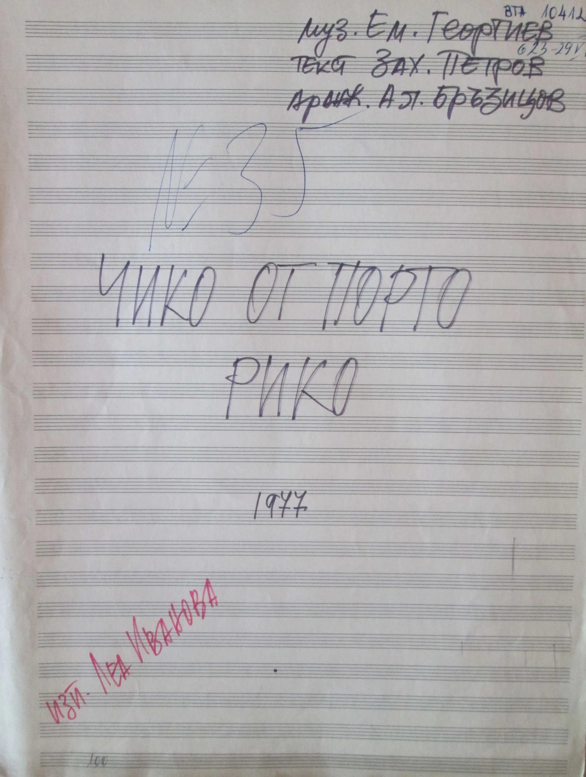 Благодарим Ви за този въпрос. За първи път на наш търг се открива нова ниша - оригиналните ноти, партитурата, на много известни български песни. Предлагаме да бъдат закупени песните “Боянският майстор”, композитор Александър Йосифов, автор на стиховете Богомил Гудев, записана през 1969 година от Лили Иванова; “Чико от Порто Рико”, композитор Емил Георгиев, стиховете са на Захари Петров, аранжиментът и нотите са положени от Александър Бръзицов, записана през 1977 от Леа Иванова и “Огън от любов” по стихове на Ваньо Вълчев и музика на Тончо Русев, записана на 21 Ноември 1985 от LZ. Цяло чудо е, че някои от златните песни на българската популярна музика са запазени и сега има възможност да бъдат предложени на колекционерите.