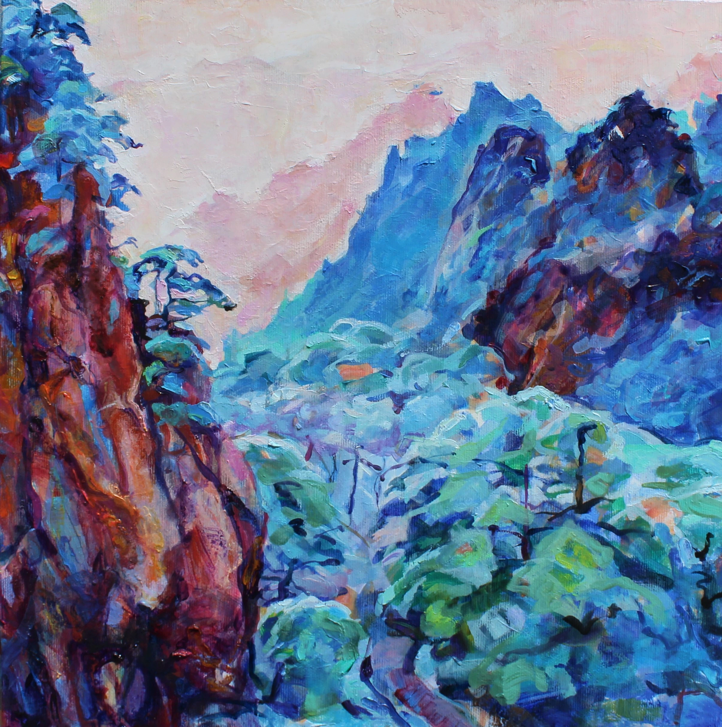 Когато решава да нарисува Гранд Каньон Дейвид Хокни избира да работи по спомен, за да може да предаде онова особено състояние всред безкрая. Вярвам, че мнозина от вас са изпитвали това планинско усещане – силно изнесените в хоризонт и вертикала елементи от пейзажа си играят със сетивата. Чувстваш се леко замаян, все едно се смаляваш и почти се разтваряш в необятното пространство. Озоновата синева има вкус и хладни капчици поръсват страните ти. Подобни сензитивни, почти тактилни видения каня в ателието си.