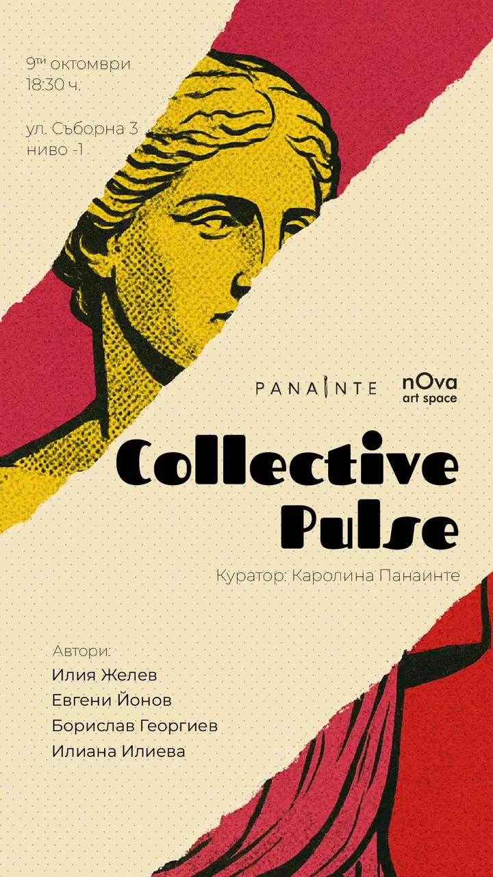 Тази вечер от 18:30 часа в галерия nOva art space ще бъде открита поп арт изложбата Collective Pulse. Заглавието по категоричен начин ни подсказва, че в нея се обединени енергията, фантазията, уникалният почерк и емоционален заряд на група творци, които ни провокират със своите атрактивни визионерски произведения и нестандартно мислене.