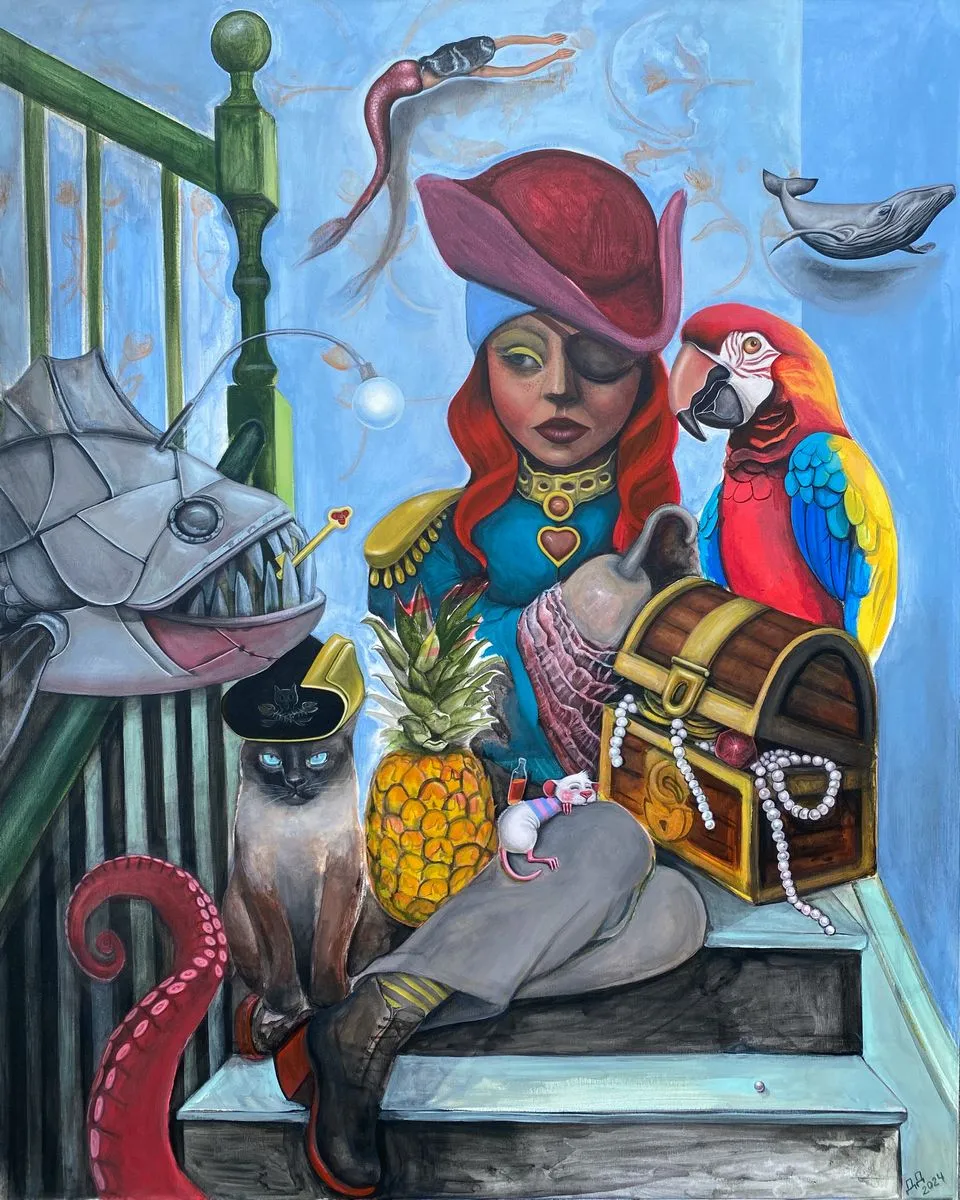 „През последните две години започнах да усещам цветовете по начин, който ме промени и който ме преоткри. Цветовете избухват като сън. Животните са двойници и пазители, а фигурите разказват за вътрешното дете – уязвимо, но силно. Композициите са театрални, мислени седмици наред. Без бягство. Това не е приказка. Сънят е мястото, където подсъзнанието среща сенките и цветовете, за да разкаже истории и да зададе въпроси.”