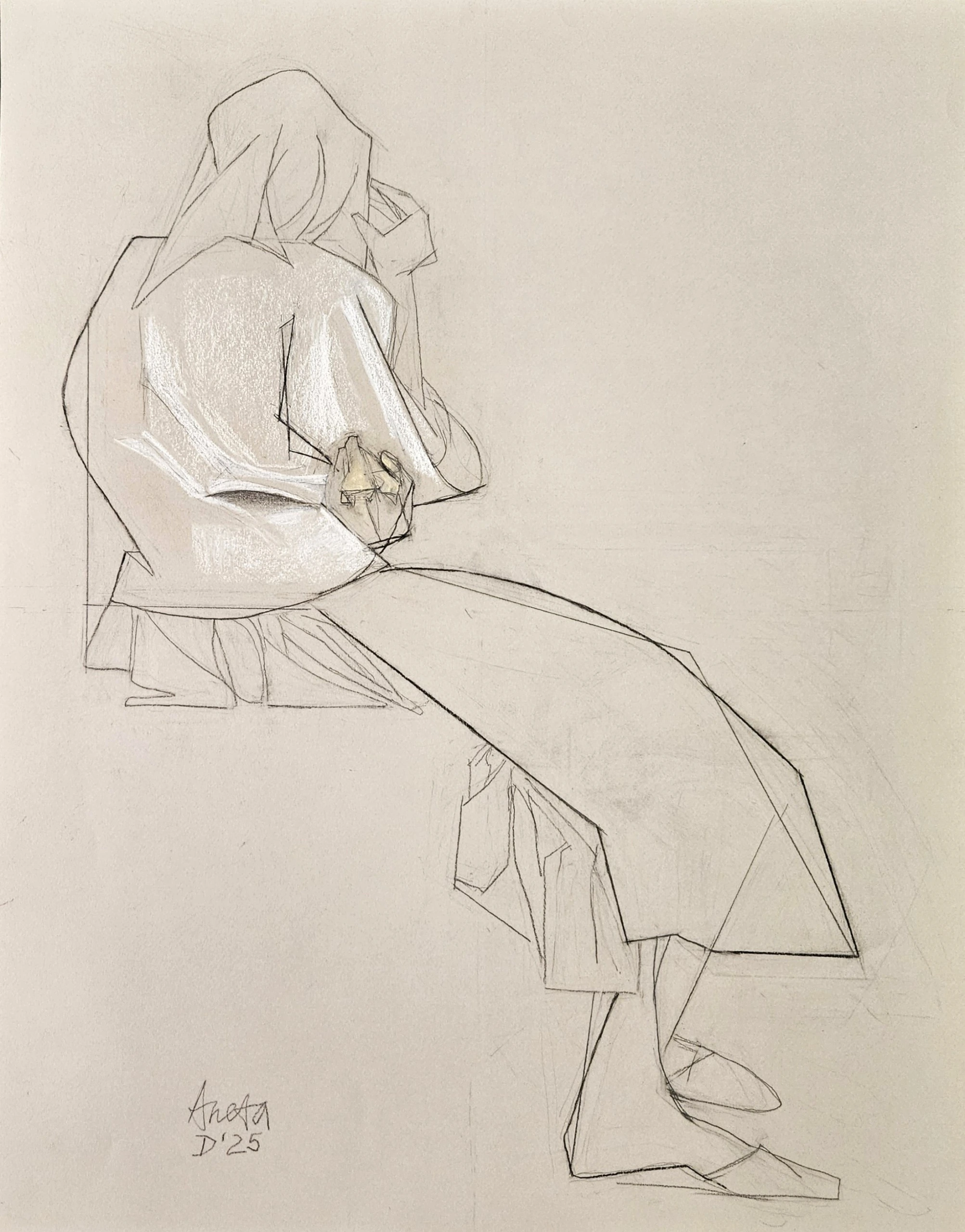 Това е пета самостоятелна изложба на Анета Дръгушану в Галерия Арте. Настоящата експозиция включва около десетина рисунки от последната година и 7 живописни платна с ретроспективен характер /от 1988 до 2024г./ Темите в изложбата са посветени на човека и неговия свят – цикъл „Градината на човека“, „Родова сцена“, „Майка“ и др. В картините: „Хляб насъщни“, „Опалена земя“, “Жанрова сцена“….. Дръгушану преминава от конкретното, фигуративното към абстрактното, обобщеното. Конструктивните форми, седефените цветове и модерният рисунък впечатляват, удивляват и респектират. Без съмнение Анета е знаков художник с неповторимо присъствие в съвременния ни художествен живот.