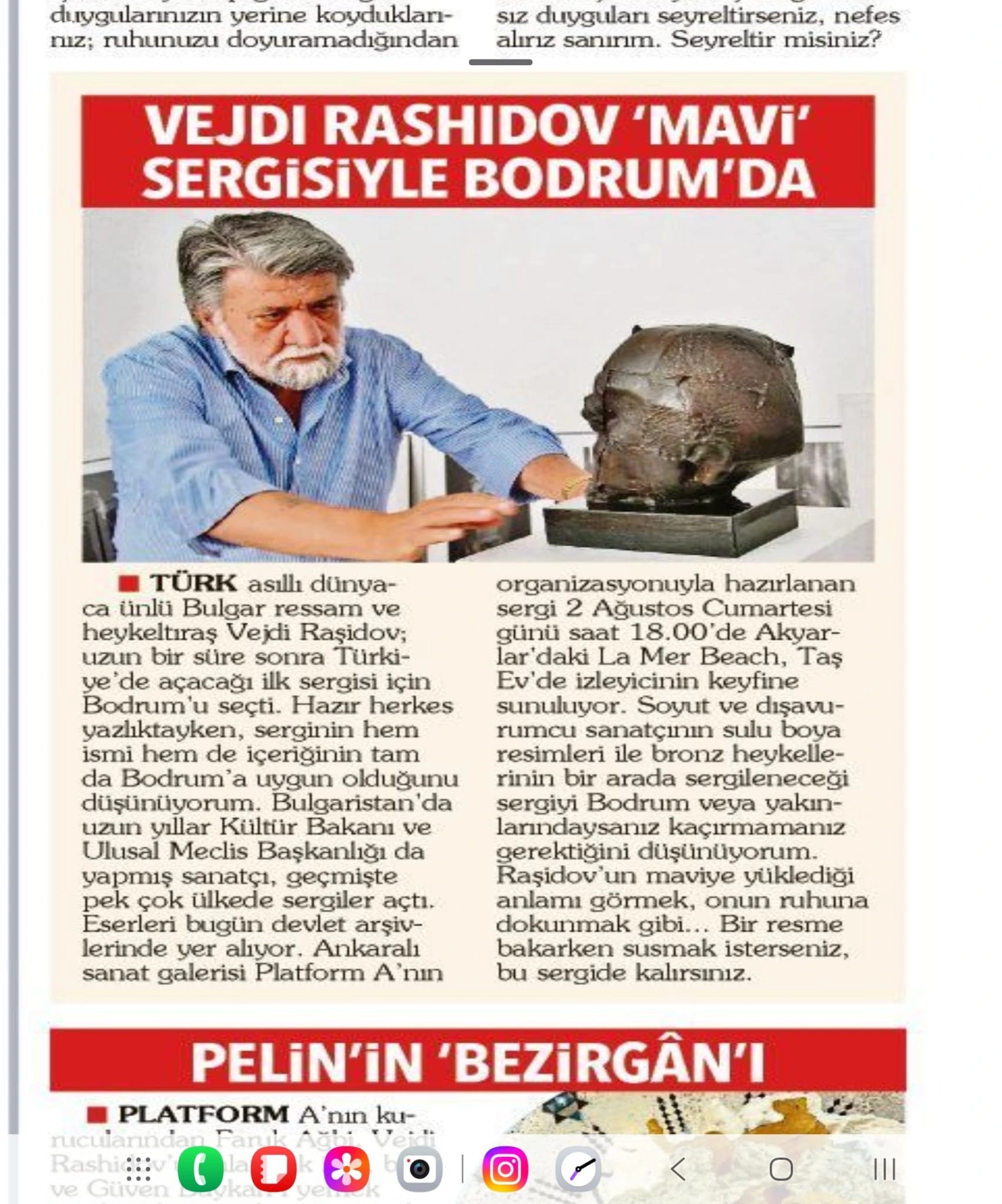Турските медии отразиха подробно най-новата изложба на Вежди Рашидов. Той даде голямо интервю за в. „Хюриет“.