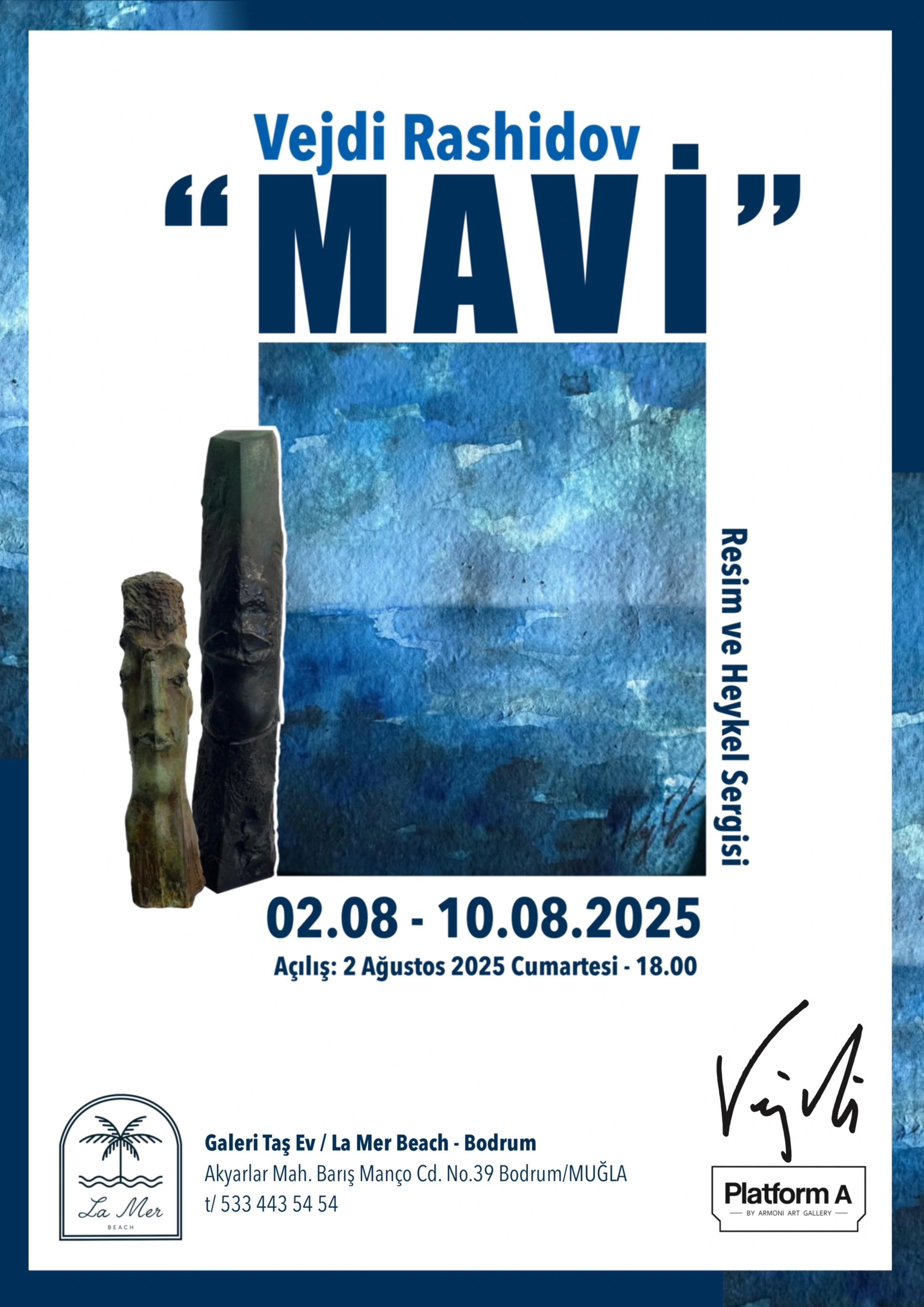 Откритата късно вечерта в събота изложба „Синьо“ от 40 акварела и пет скулптури на Вежди Рашидов предизвика истински фурор в прочутия турски курорт Бодрум.