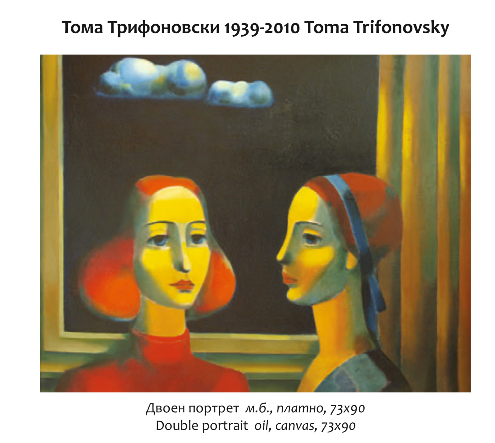 „Той притежава и една от най-вълнуващите творби от 80-те години на Тома Трифоновски „Двете момичета”, а аз познавам моделите. С огнената коса е журналистката Даниела Пурчелова, а другата съм аз. В експозицията картините на Томата и Шаро - Атанас Яранов, са една до друга, точно както е било в живота. Друго платно съжителства с тайнствените натюрморти - цветя на Йордан Кацамунски, също любим художник и приятел на Томата”.