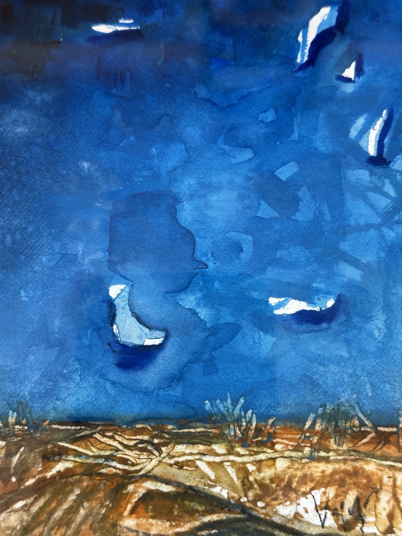 Артистичната Каменна къща в Бодрум ще бъде „превзета“ от пет скулптури и 40 акварела във всички нюанси на синия цвят. Затова изложбата е наречена „Синьо“.
