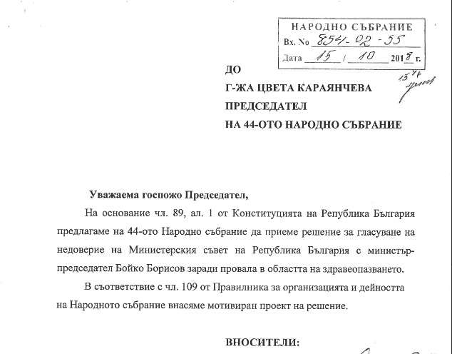 БСП с трети вот на недоверие срещу правителството. Ръководството на левицата внесе в деловодството на Народното събрание мотивите за вота на тема „Здравеопазване”.