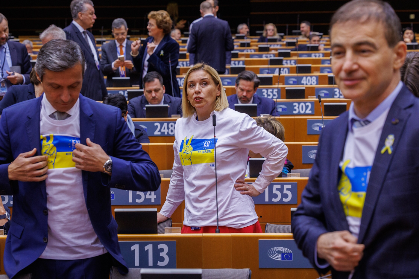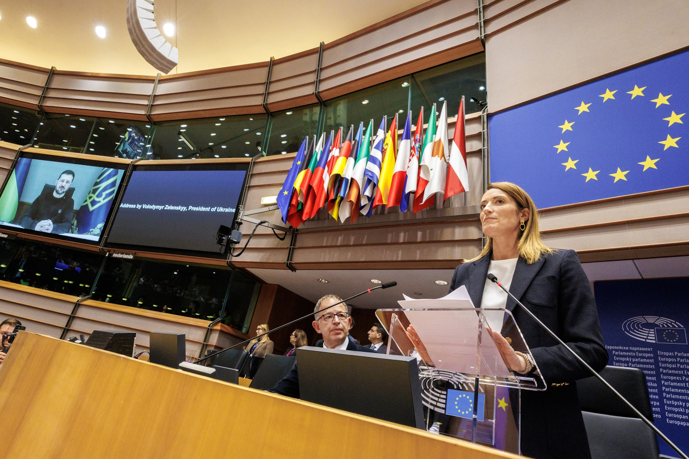 Украинският президент Володимир Зеленски се обърна чрез видеовръзка към членовете на ЕП с благодарност за подкрепата и „затова, че се погрижихте в нито един от тези 1000 дни да не се допусне измяната на европейските ценности“. „Доказахте, че това не са само думи, свързано е с европейския начин на живот. Думите бяха превърнати в дела, в защита на народа ни. Така днес Украйна и партньорите ни в целия свят успяхме не само да спрем Путин да не завземе страната ни, но и да направим така, че той да е по-малък от обединените сили на Европа“, заяви Зеленски. По неговите думи Русия може да бъде заставена с общи усилия да приеме справедлив мир.