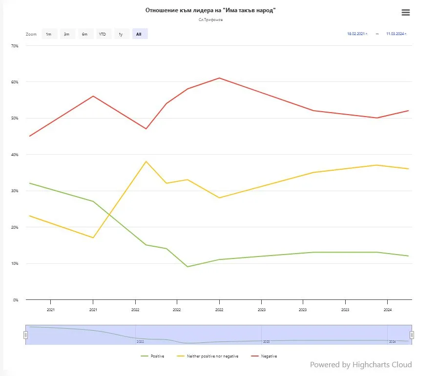 Тема за размисъл е това за политически лидери. Разбира се, изненадващите разлики в народното отношение могат да имат и съвсем друго обяснение и то да е вярното - примерно, медиите следят по-фокусирано Бойко, БСП и Радев и ги подлагат на по-интензивни, ежедневни атаки, които манипулират общественото мнение и това е, което виждаме, докато крайностите на медиите по отношение на ИТН и ППДБ са спестени, което се отразява и на обществения им имидж, който не се влияе толкова от неутралното отразяване, стои си, бавно и плавно, ами, всъщност все по-негативен.