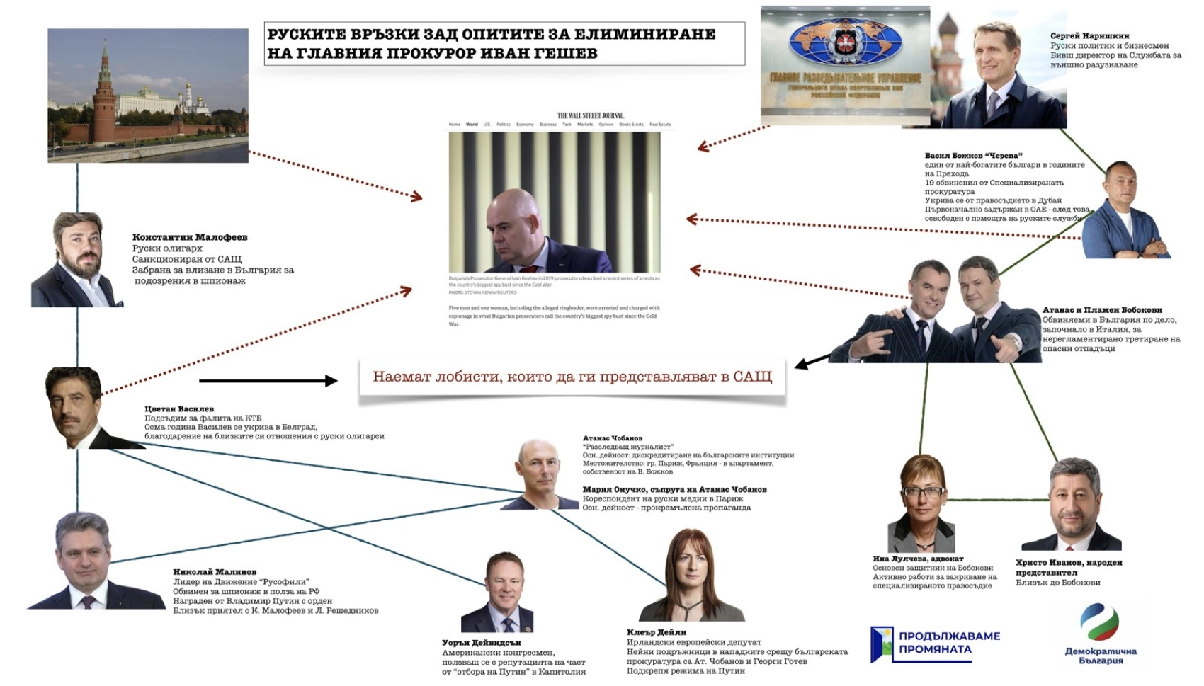 Интересът на Кремъл и на представители на българската олигархия по отстраняването на главния прокурор напълно съвпада. Причина за това следва да се търси и в особената активност на Иван Гешев в последните три години по разкриване на над 10 руски разузнавачи в България, ползващи се с прикритието на дипломати, които бяха принудени да напуснат страната. В качеството си на главен прокурор Гешев е подпомогнал изгонването от ЕС на повече от всеки друг висш магистрат, заемащ идентичния пост в страна членка на общността.