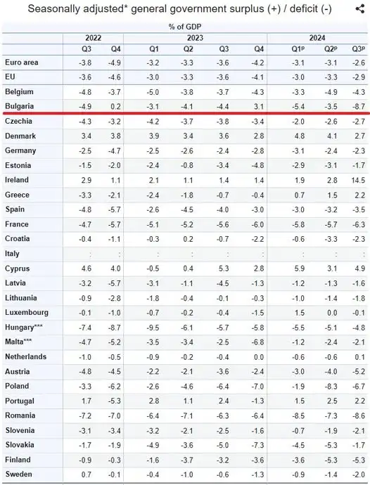 Засега нямаме данни на начислена основа за последното тримесечие на 2024, но имаме за първите три и всеки може да ги види на сайта на Евростат. Какво показват до момента?