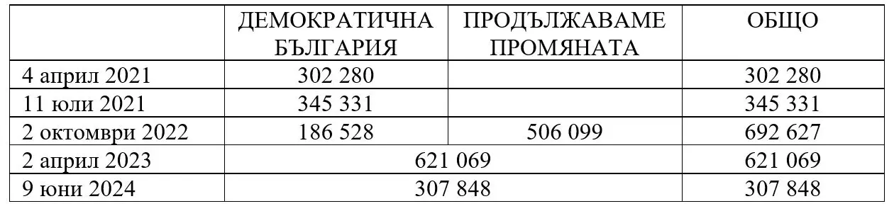 Доказателство за това азбучно политическо правило са резултатите на коалиция „Продължаваме промяната“-„Демократична България“. За обединението на последните избори в неделя са гласували общо 307 848 души или наполовина от вота им на 2 април миналата година, когато събраха 621 069 гласа. Големият тест обаче е сравнението с 11 юли 2021, преди появата на ПП, когато ДБ съвсем сами събираха 345 331 – повече отколкото общо събират сега.