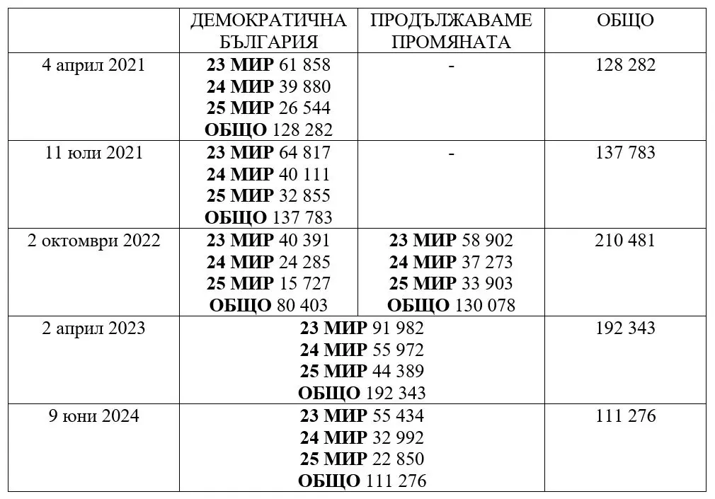 Победата в София също не следва да е утешение, защото общите 111 276 са чувствително по-малко в сравнение с времето преди началото на „Промяната“ и прегръдката с Кирил Петков и Асен Василев. През 2021 г. ДБ получи 137 783 гласа и беше в тенденция на растеж с столицата, преди на сцената да изгреят партньорите им.