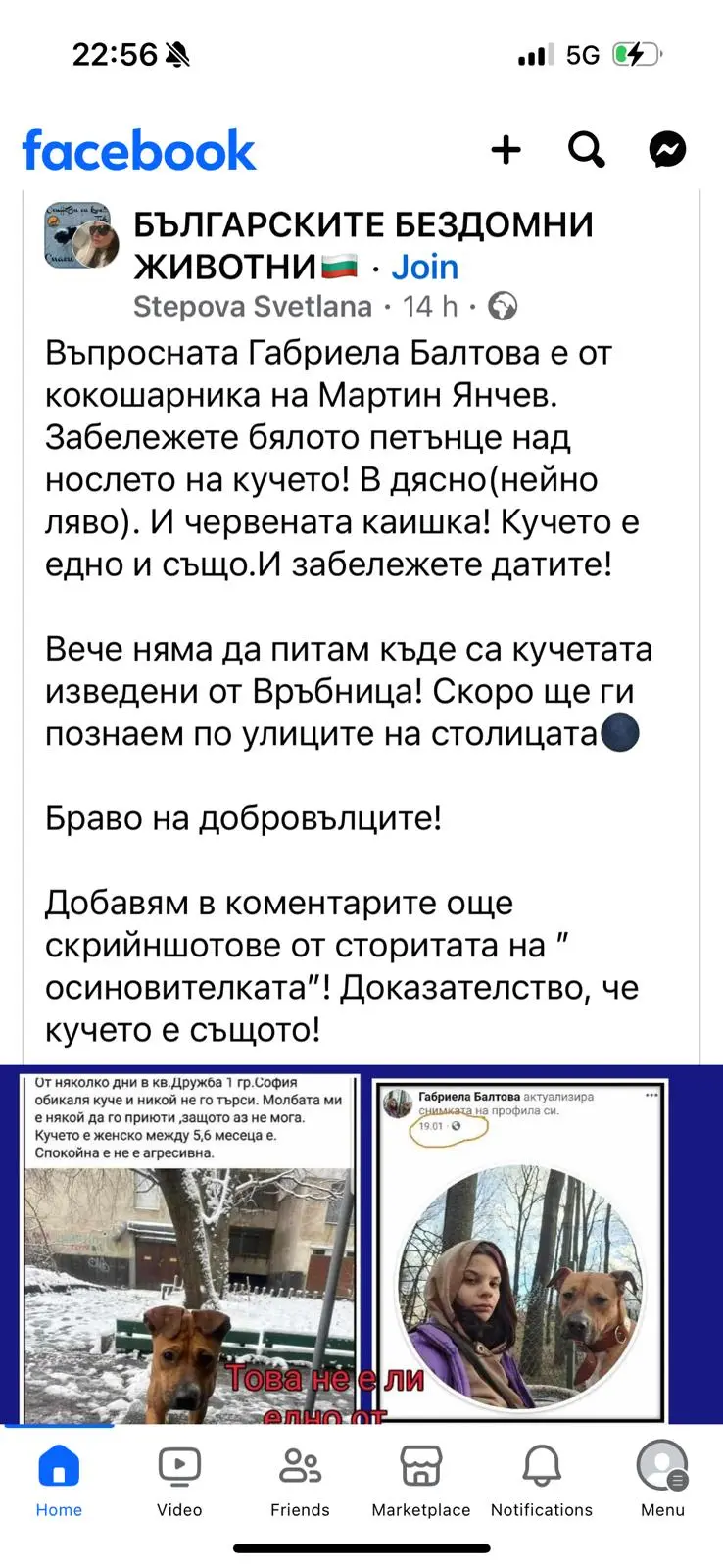 По думите им момиче на име Габриела Балтова и Мартин Янчев взимат кучета от приюти, уж ще ги спасяват, правят си снимки и реклама, а след това четириногите си озовават на улицата. Така и никой не знае какво се случва с кучетата след като се озоват отново на улицата и на какво основание въпросните "спасители" взимат животинките, а след това никой не се интересува от тяхната съдба.