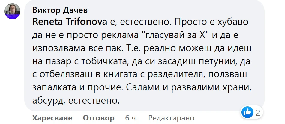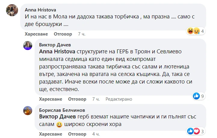 Дачев обясни в коментарите, че става дума за дело на ГЕРБ, които взимали торбичките им.