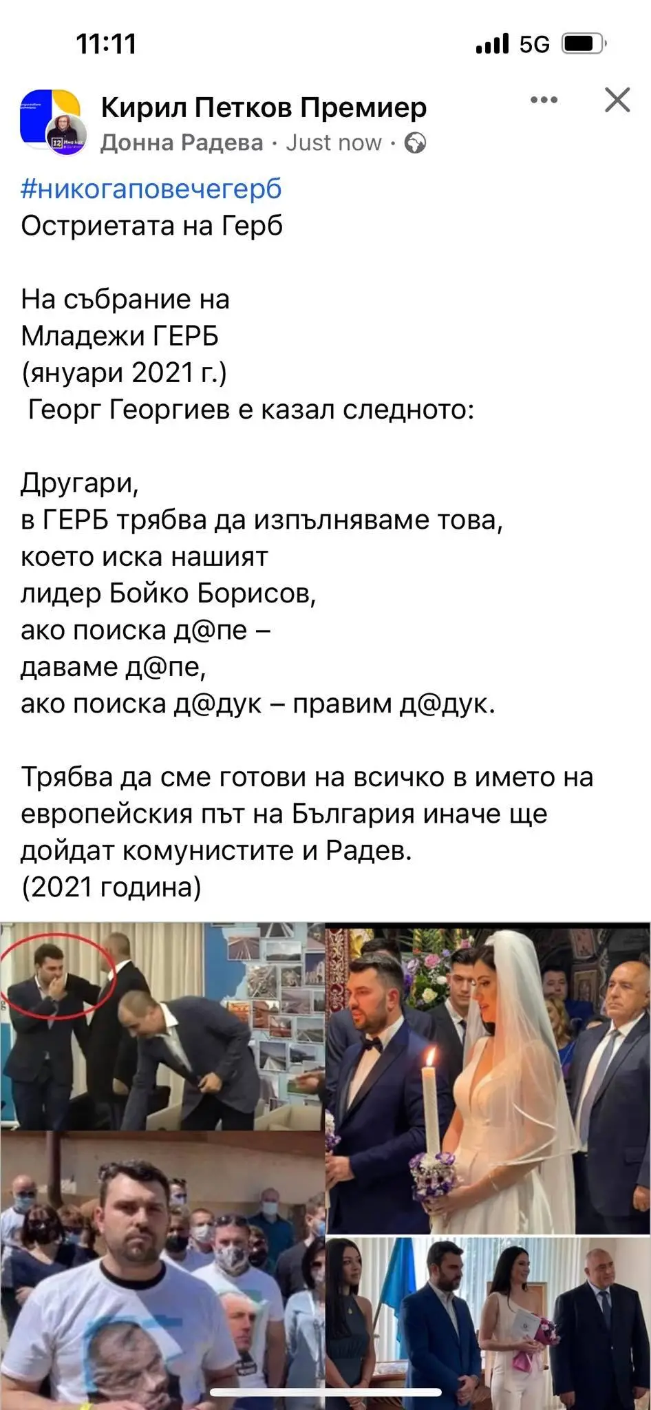 Тази фалшива новина с потресаващи измислици публикува най-запалената активистка на ПП-ДБ Донна Радева в група за възхвала на Кирил Петков, администрирана от самата нея. Тя седи зад повечето фен групи на „младите“ от ПП. Жената очевидно е на преклонна възраст, но не се свени да говори за „дудуци“.