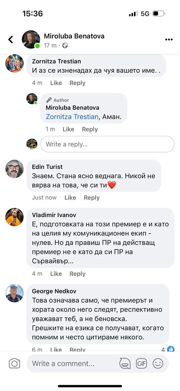 Бенатова уточни, че написаното от нея не е шега и иска официално прессъобщение от Министерски съвет с извинение за обърканото й име.