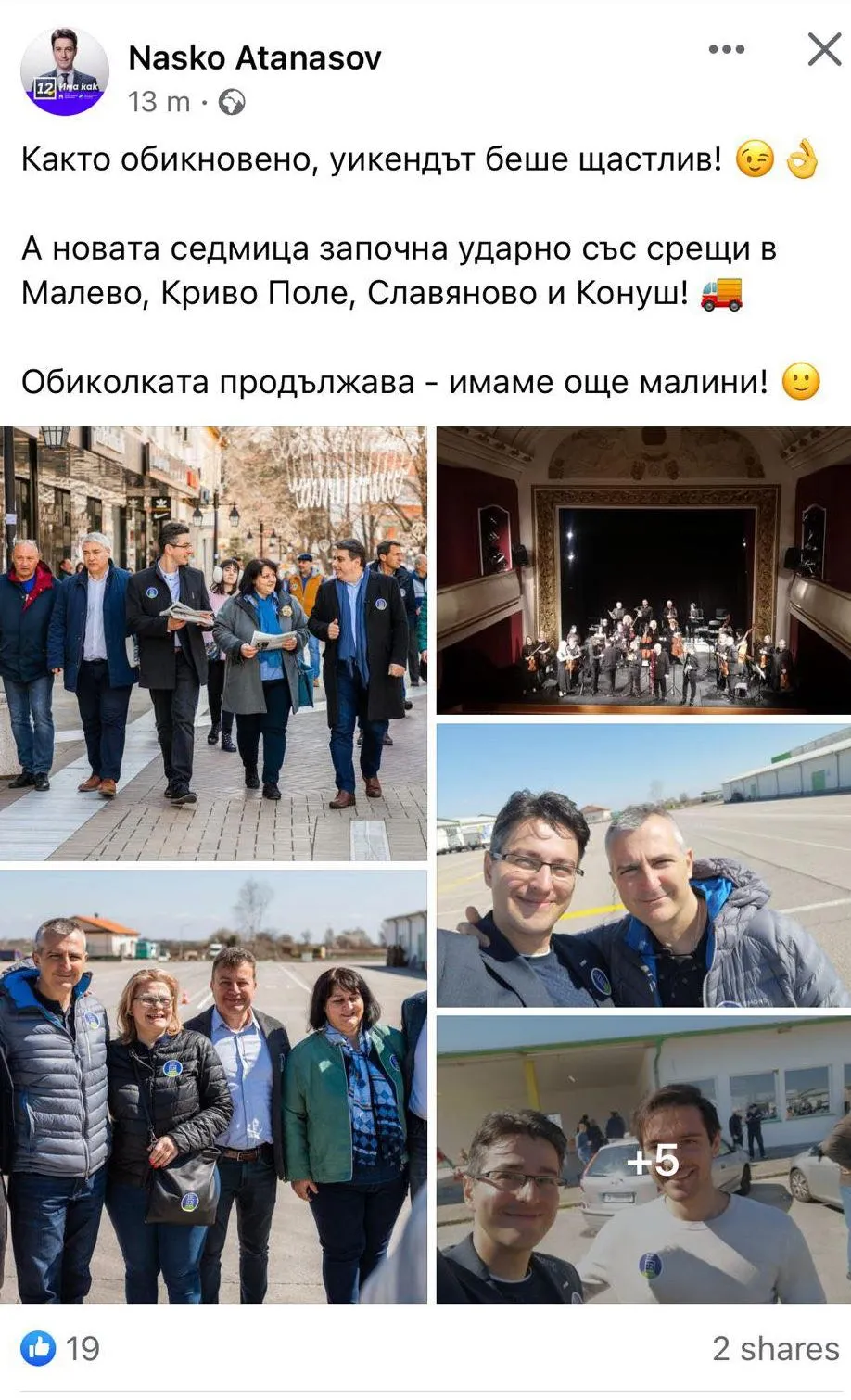 Бившият министър на културата от ПП Атанас Атанасов се похвали с щастливи уикенди. Във Фейсбук той си пусна няколко снимки с негови близки докато обикаля страната.