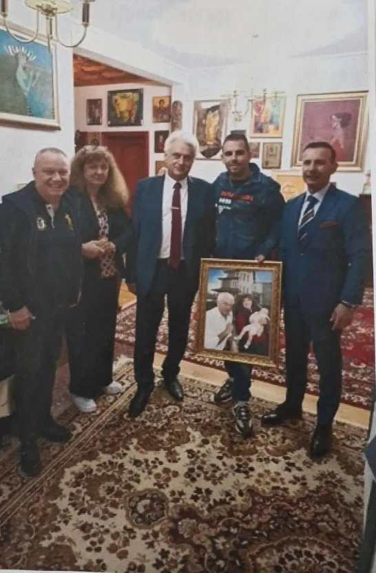 Хората на Паскал и Живко Коцев подаряват на Бойко Рашков в дома му картина.