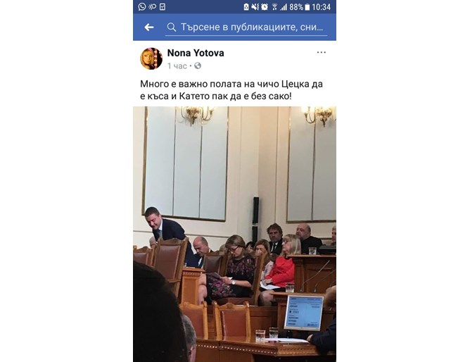 „Много е важно полата на чичо Цецка да е къса и Катето пак да е без сако“. Подобен непонятен и изключително злобен коментар се появи на стената на депутатката от БСП Нона Йотова, която освен всичко друго е известна и като народният представител с най-абсурден и „чалга“ стил в целия парламент.