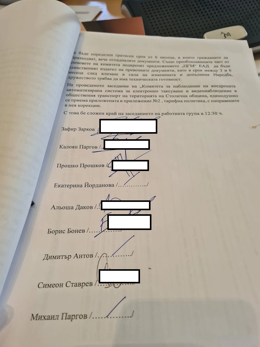 Подписът на Симеон Ставрев от Демократична България за отпадане на картата за една линия. От вчера лъже и маже, че не бил подписвал. Е, подписал е. Виждат се и подписите на БСП, ГЕРБ и Бонев.