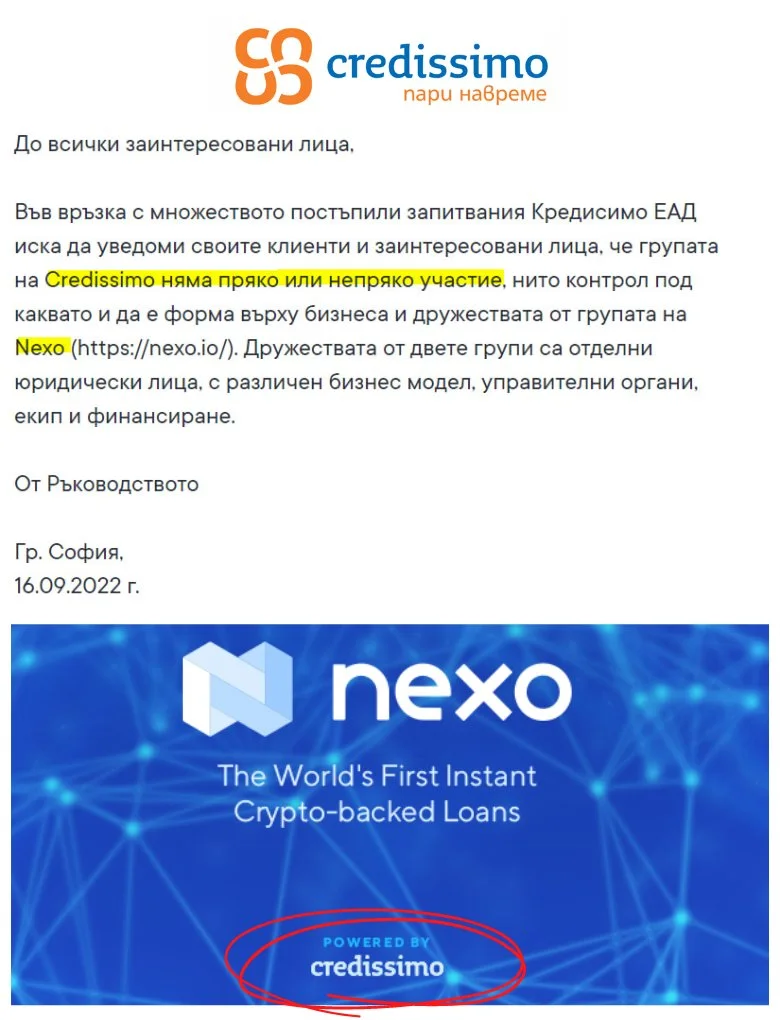 Има ли връзка между Nexo, „Кредисимо“ и „Хелп карма“?