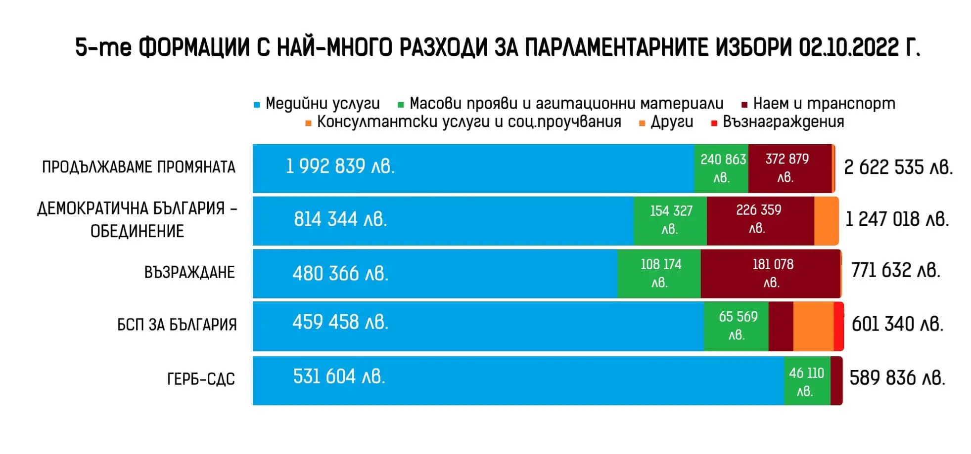 Средствата за кампании в социални мрежи - фейсбук, вайбър, ютюб, тикток, инстаграм - са безотчетни. Те се харчат безконтролно. По закон те не се обявяват в Сметната палата. И този закон продължава да бъде държан по този начин.