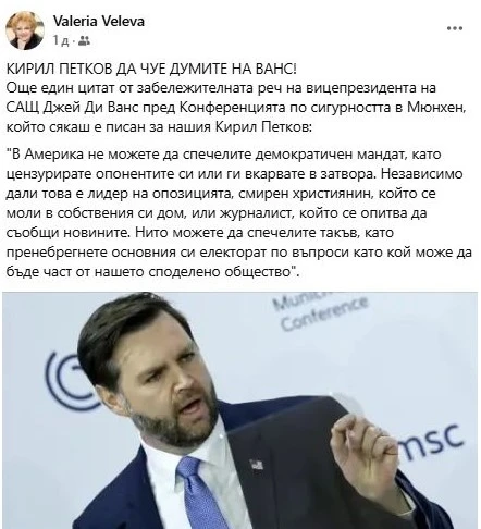 САЩ Джей Ди Ванс пред Конференцията по сигурността в Мюнхен, който сякаш е писан за нашия Кирил Петков: