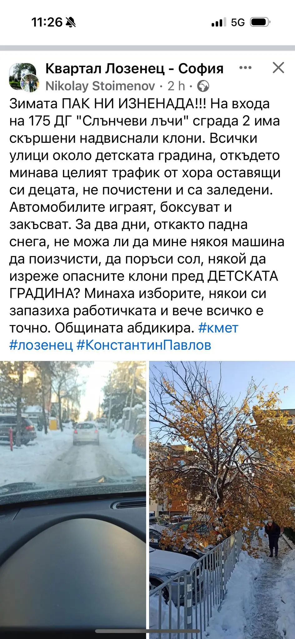 София има ли кмет въобще? Има ли районни кметове? Къде се укриват? Защо десетки улици из целия град вече трети ден са затрупани от паднали клони и дървета? Кой ще поеме отговорност и най-важното - ще намерят ли силици да си свършат работата? Да, работа. А не фръцкане из социалните мрежи.