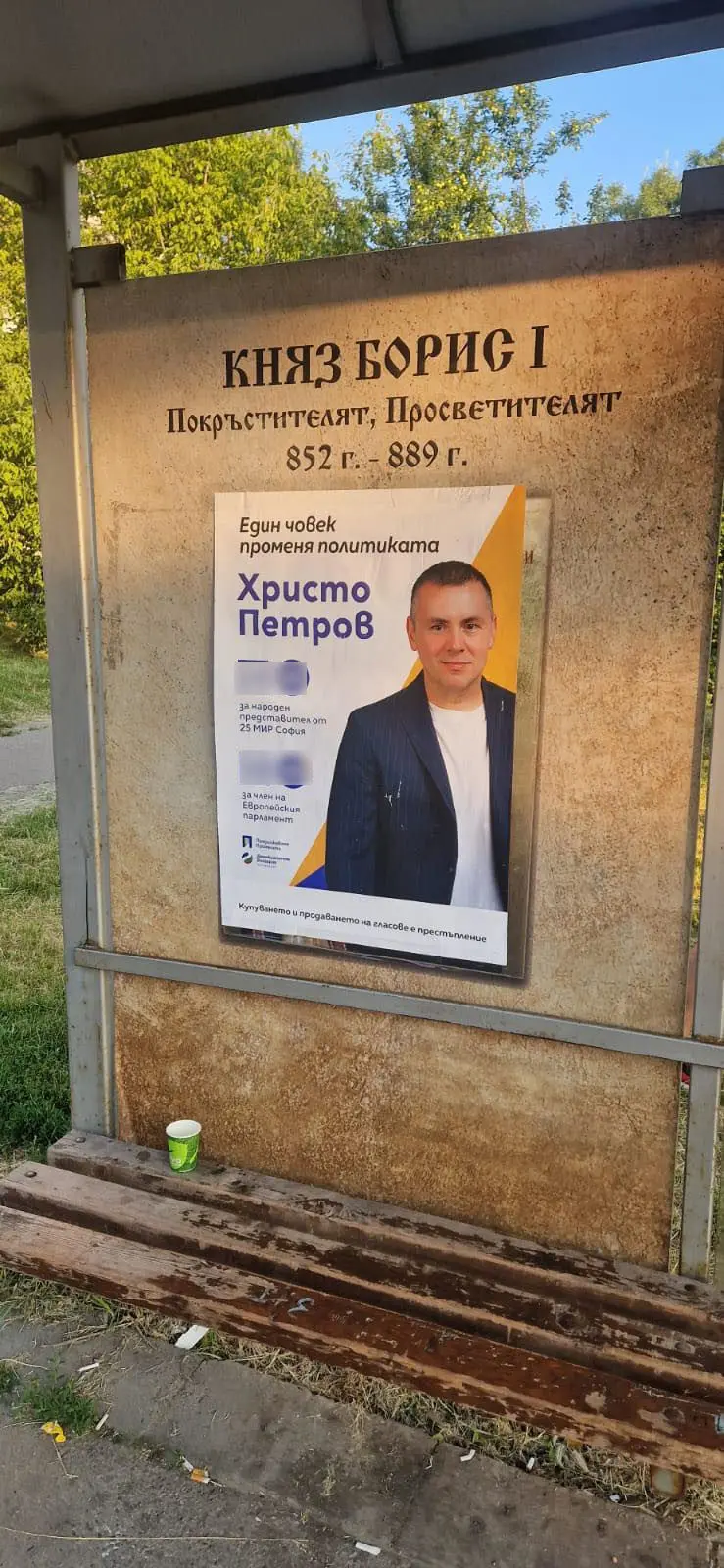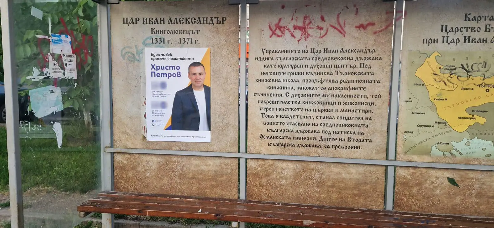 “Царят свинар възкръсна-прост, но известен и с кеш”, пишат онлайн потребители, които публикуваха кадрите на плакати на Ицо Хазарта и Руди Гела върху столични спирки на градския транспорт, които са част от проекта “Велика България”.