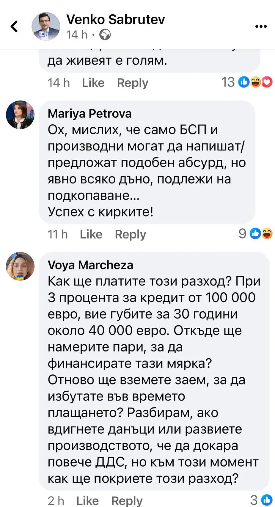 2. Безлихвените кредити се отпускат през държавна банка, например ББР. Финансовото състояние на тази институция е плачевно, не изпълнява предназначението си и ако зависеше от пазарната логика, отдавна щеше да е фалирала. Ако политиците се опитат да я използват за подобна цел, експериментът ще завърши катастрофално.