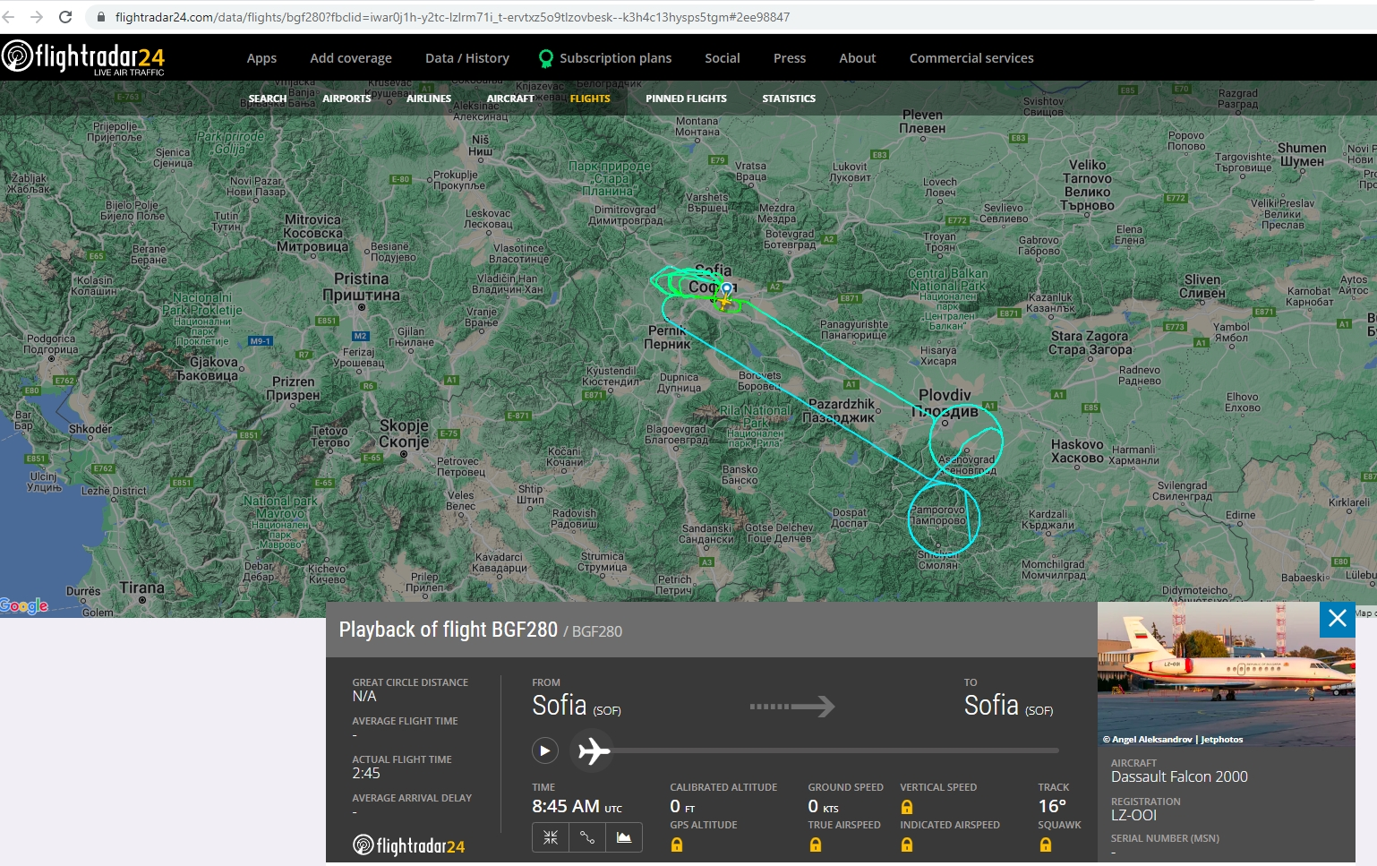 Не самият полет, а по-скоро маршрутът му, видим на сайта Flightradar24, прикова вниманието в социалните мрежи. Самолетът излита от София, лети в посока Пловдив, където чертае два кръга в българското небе – над Пловдив и Асеновград, а след това над Пампорово и Смолян, накрая се връща в столицата.