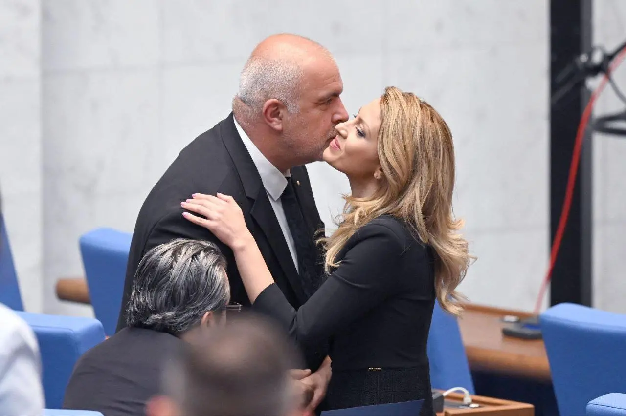На него реално са Рая Назарян и депутатът Маноил Манев, който очевидно я поздравява с успешното гласуване на кандидатурата ѝ за председател на НС.