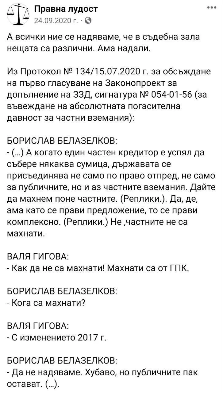 - Да не надяваме. Хубаво, но публичните пак остават. (…)”, се твърди в групата „Правна лудост”