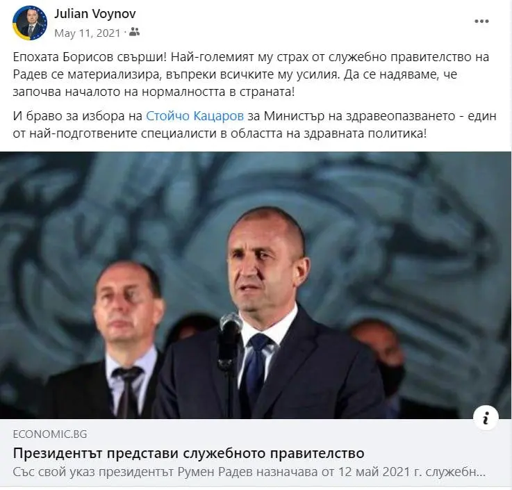 По време на изборите през 2021 година Войнов обяви, че „епохата Борисов приключва“.