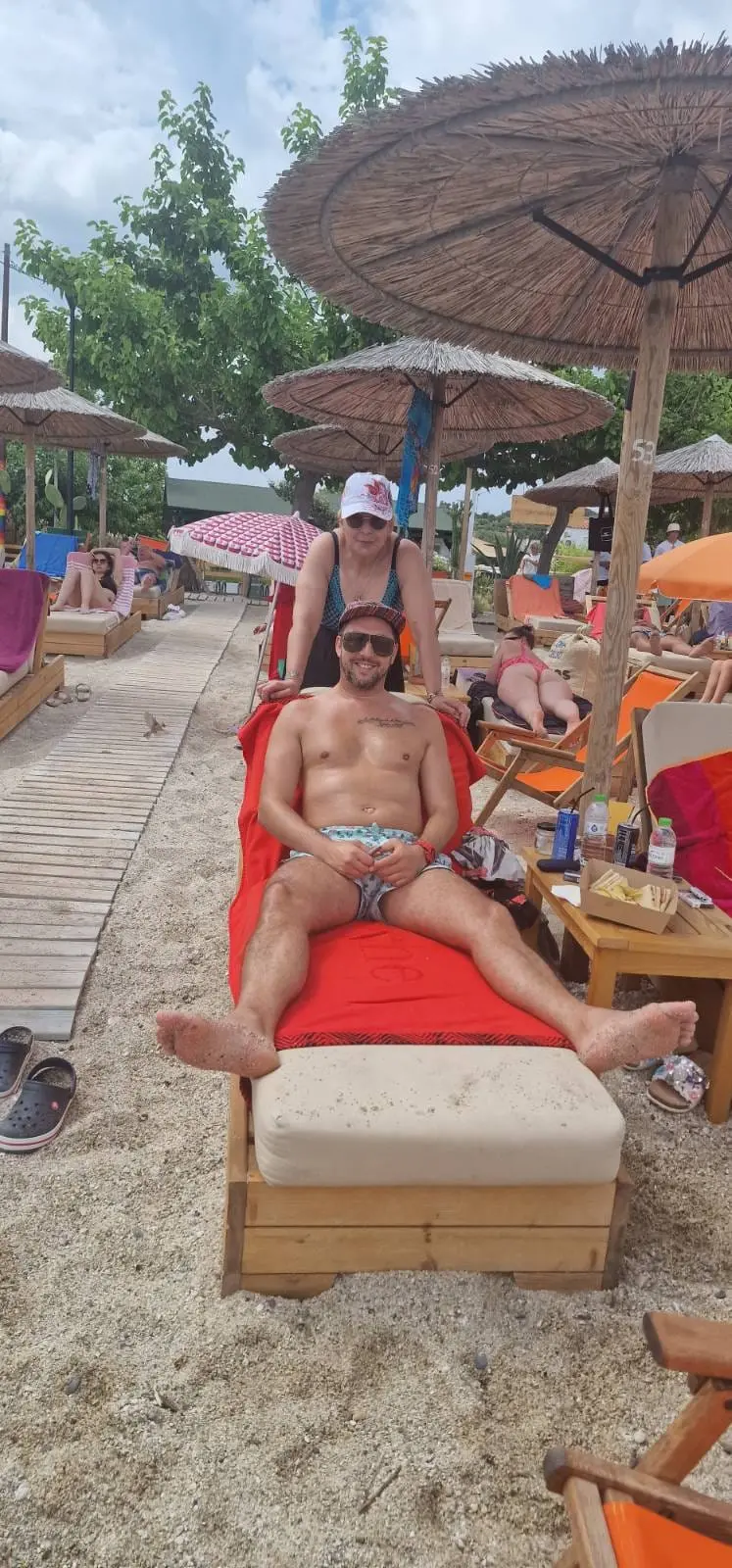 Няколко дни по-късно тя вече събира тен заедно със своя приятел Стоян Тончев на Халкидики.