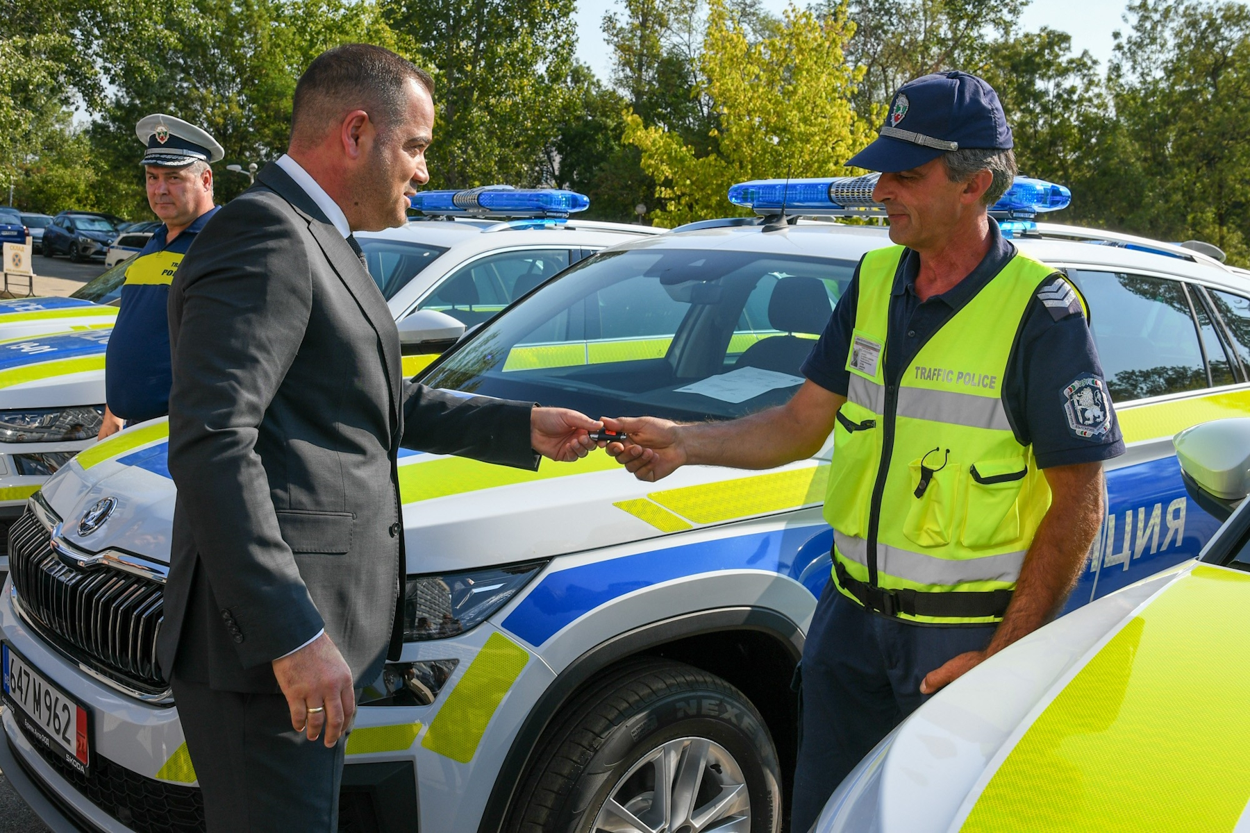 „Това е още една малка крачка в битката, която водим с пътния травматизъм. Убеден съм, че с подобни малки, но сигурни крачки, ние ще излезем победителите в тази битка“. Той припомни, че става въпрос за обществена поръчка, по която следва да се доставят общо 467 автомобил. Тя е обособена в три позиции- 35 високоскоростни, които колегите от Пътна полиция получиха, втората – 200 леки, част от които са вече доставени, и трета – тази от 227 автомобила, първите от които днес вече са факт“.