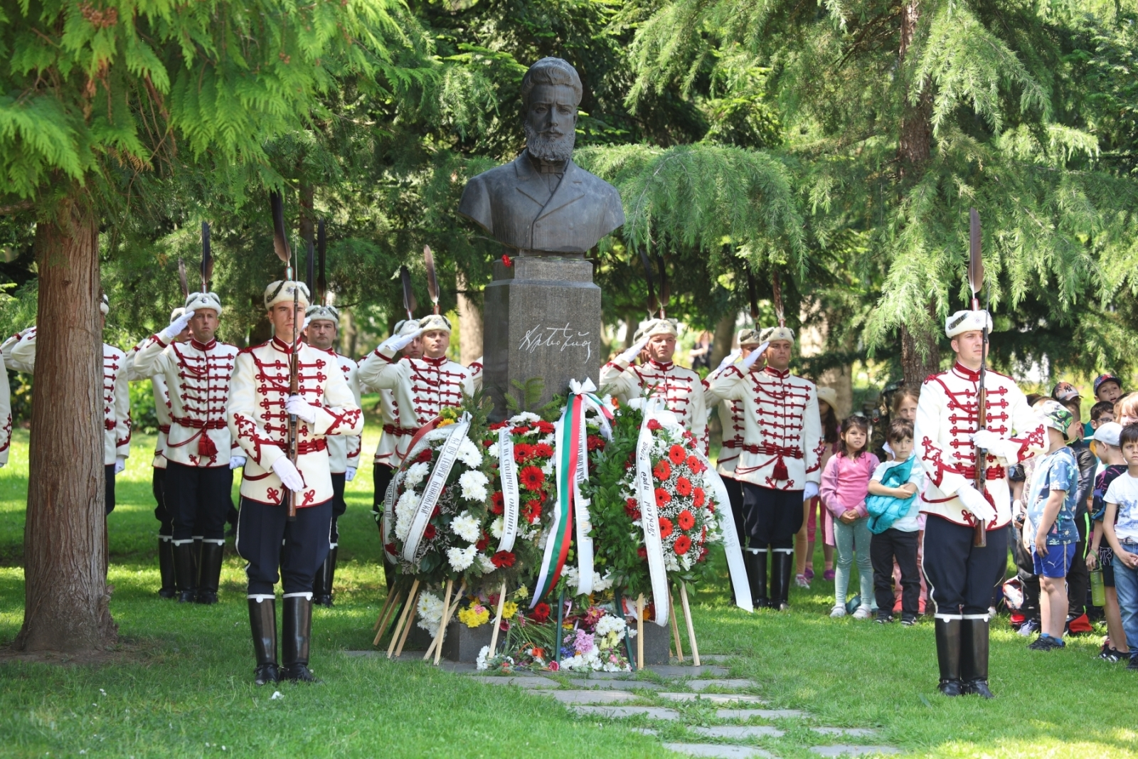 Пред бюст-паметника на Христо Ботев в Борисовата градина в София също се проведе тържествена церемония, посветена на 147-мата годишнина от гибелта на революционера и в памет на героите, загинали за свободата и независимостта на България.