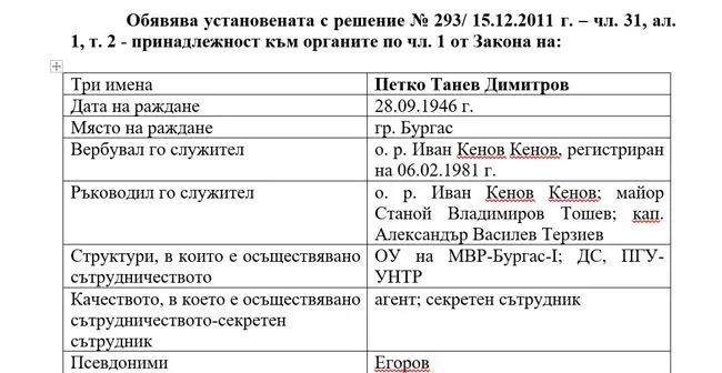Публично обявяване на секретен сътрудник „ЕГОРОВ“