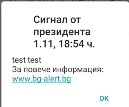 Без никакво предупреждение беше пуснато тестово съобщение от системата за ранно предупреждение за бедствия BG-ALERT на множество телефони. Стотици хора бяха уплашени от съобщението, като на някой пишело „Сигнал от президента“.