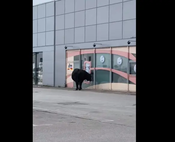 Бик опита да влезе в магазин за козметика в столицата. Видео от случката беше споделено във фейсбук групата "Забелязано в София".