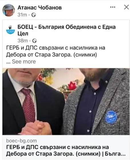 Фалшивата новина, разпространена от гражданско сдружение „БОЕЦ“ и журналистът Атанас Чобанов, изглежда ще ги изправи пред съда. „ГЕРБ и ДПС свързани с насилника на Дебора от Стара Загора. (снимки)“, гласи заглавието на новината, публикувана в събота.