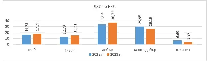Като цяло се запазва подредбата на регионите с най-добри резултати от ДЗИ по БЕЛ. Първите пет са София-град, Смолян, Пловдив, Варна и Благоевград. Последни по резултати са областите Шумен, Разград, Плевен, Пазарджик и София-област.