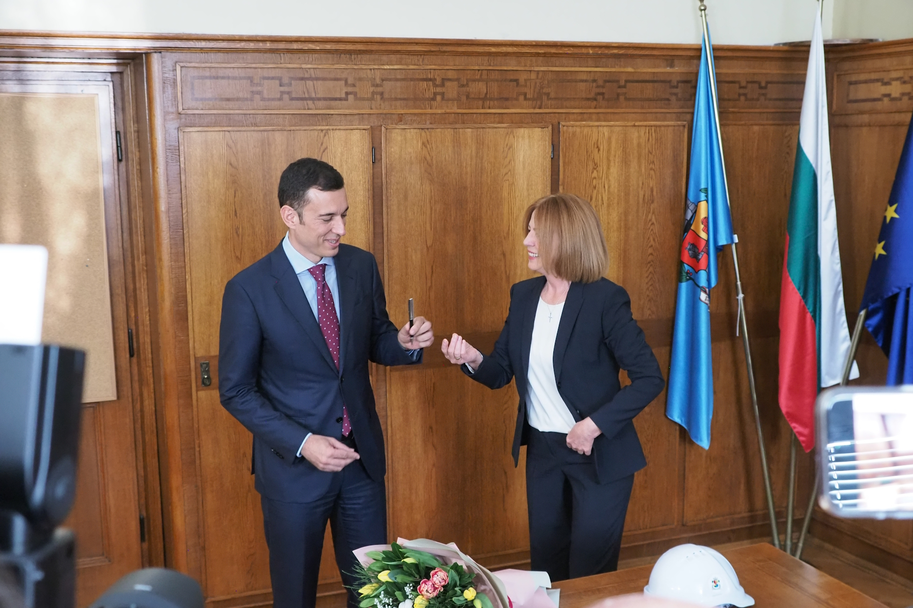 Фандъкова предаде кметския пост на Терзиев. Подари му личната си каска, саксия и химикалка (СНИМКИ)