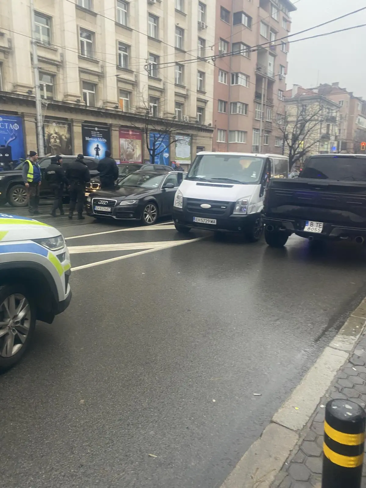 Джипове с плевенска, варненска и благоевградска регистрация блокираха бул. "Дондуков" при Операта.
